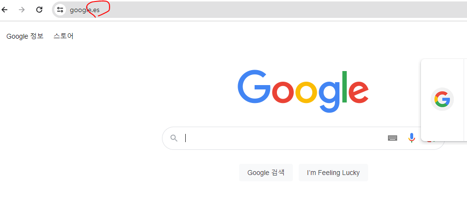 스페인 구글 주소를 클릭하여 들어가시면 위 사진과같이 es가 도메인에 붙습니다, 에스파뇰의 약어입니다.
